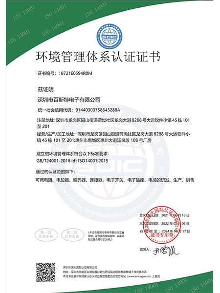 環(huán)境管理體系認證證書